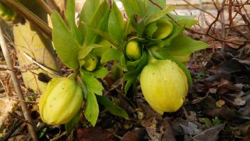 今朝、紅葉の根っこに間借りで植えたクリスマスローズさま。