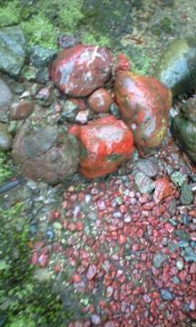 赤石が雨に打たれて、鮮やか〜